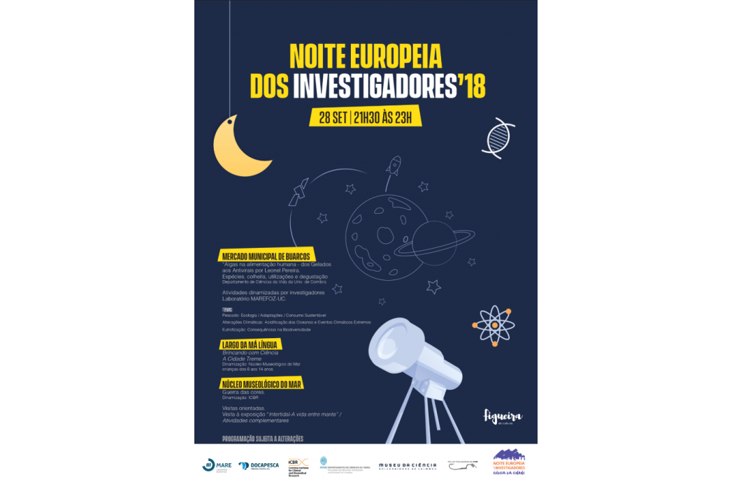 A Noite Europeia dos Investigadores tem como parceiros o Município da Figueira da Foz e a Docapesca - Portos e Lotas, S.A.