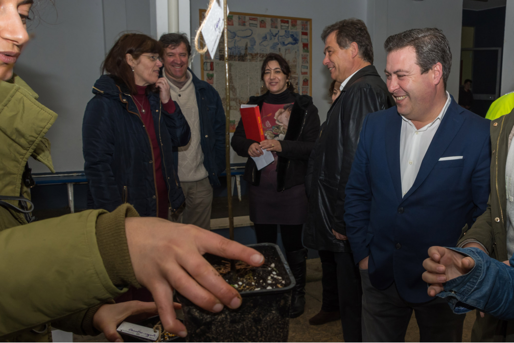 Foto: Um dos momentos de distribuição de vasos e bolotas no ano lectivo 2017/18