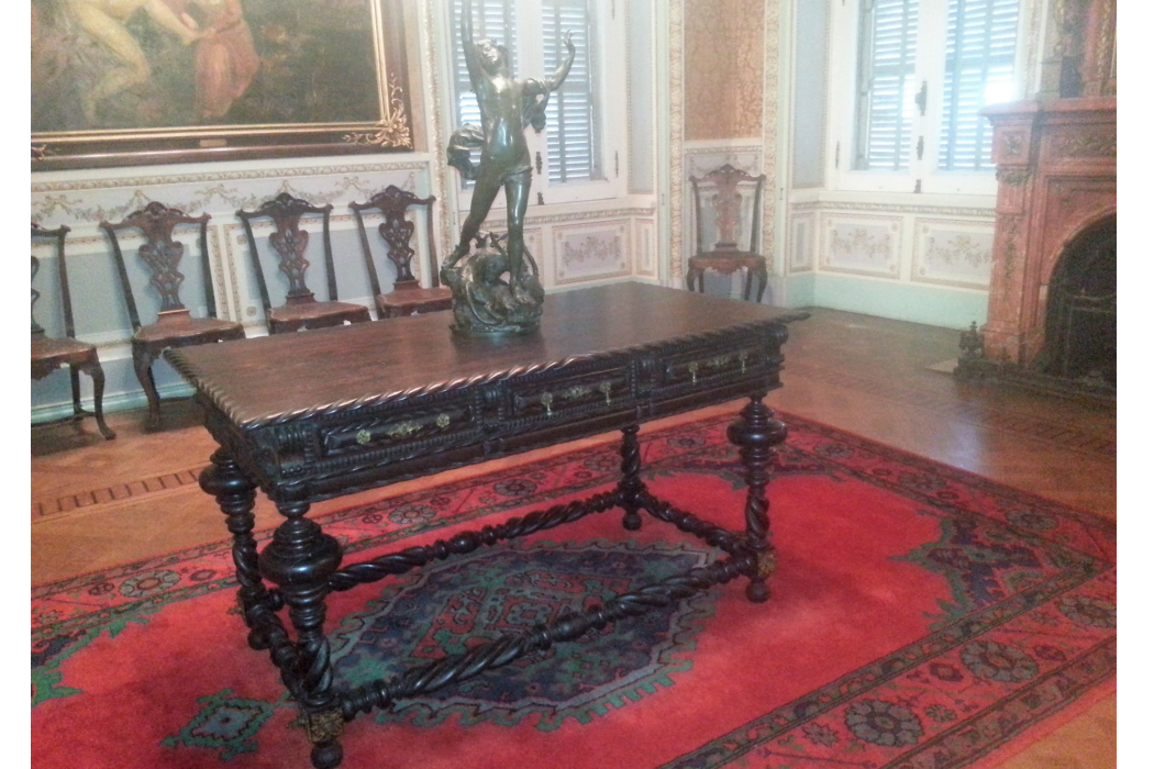 Projecto inicial do arquitecto gaulês Gaston Landeck, construído em finais do séc. XIX, ao estilo dos palacetes franceses, em que predominam, na fachada principal, motivos renascentistas. Da visita ao seu interior, não se pode ficar indiferente aos painéis ornamentais, paredes e tectos, da autoria do pintor António Ramalho, às magníficas telas assinadas por Joaquim Lopes, Dórdio Gomes, António Carneiro, sobre o vitral de Bernard Champigneulle iluminando a escadaria nobre, ou às peças de mobiliário e de escultura que decoram as elegantes salas, vestíbulos, corredores e outros aposentos.