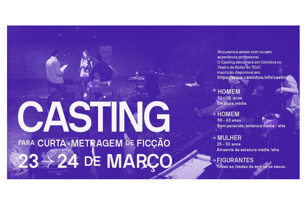 O casting decorrerá em Coimbra durante a formação em direcção de atores e casting nos dias 23 e 24 de março no Teatro de Bolso da Associação Académica de Coimbra (TEUC).