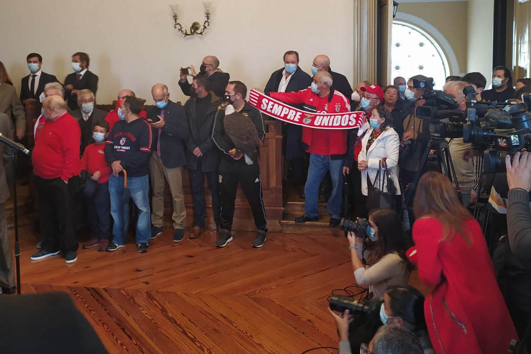 A comitiva encarnada, que incluiu algumas referências benfiquistas e a que se juntou a «Águia Vitória» e representantes de diversas Casas de vários pontos do país, foi recebida por Pedro Santana Lopes no salão nobre da Câmara Municipal da Figueira da Foz.