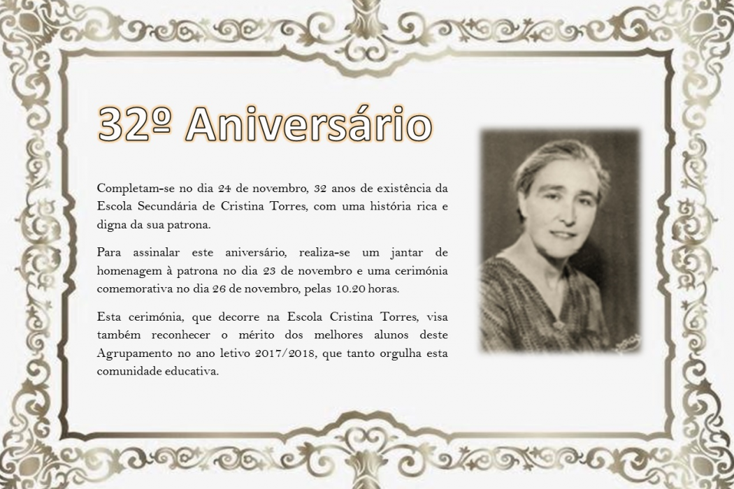 Dia 24 de novembro a Escola Secundária de Cristina Torres (pertencente ao Agrupamento de Escolas Figueira Norte) comemora o seu 32.º aniversário.