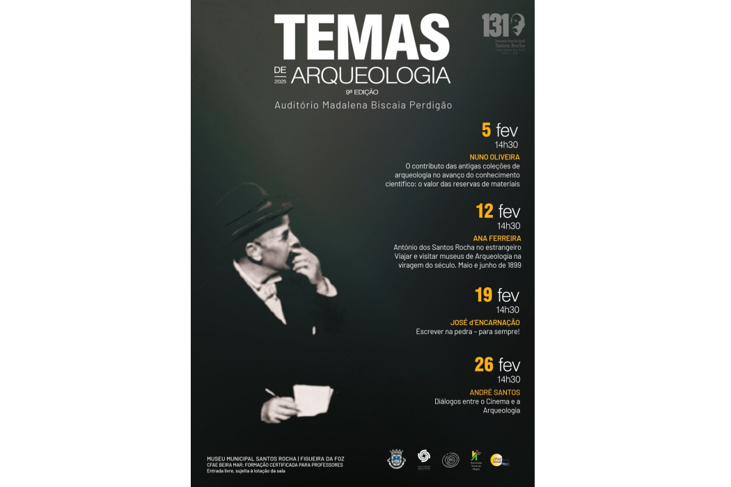 O Município da Figueira da Foz promove, no ano em que o Museu Municipal Santos Rocha assinala o seu 131.º aniversário, a 9.ª edição do ciclo de conferências «Temas de Arqueologia».